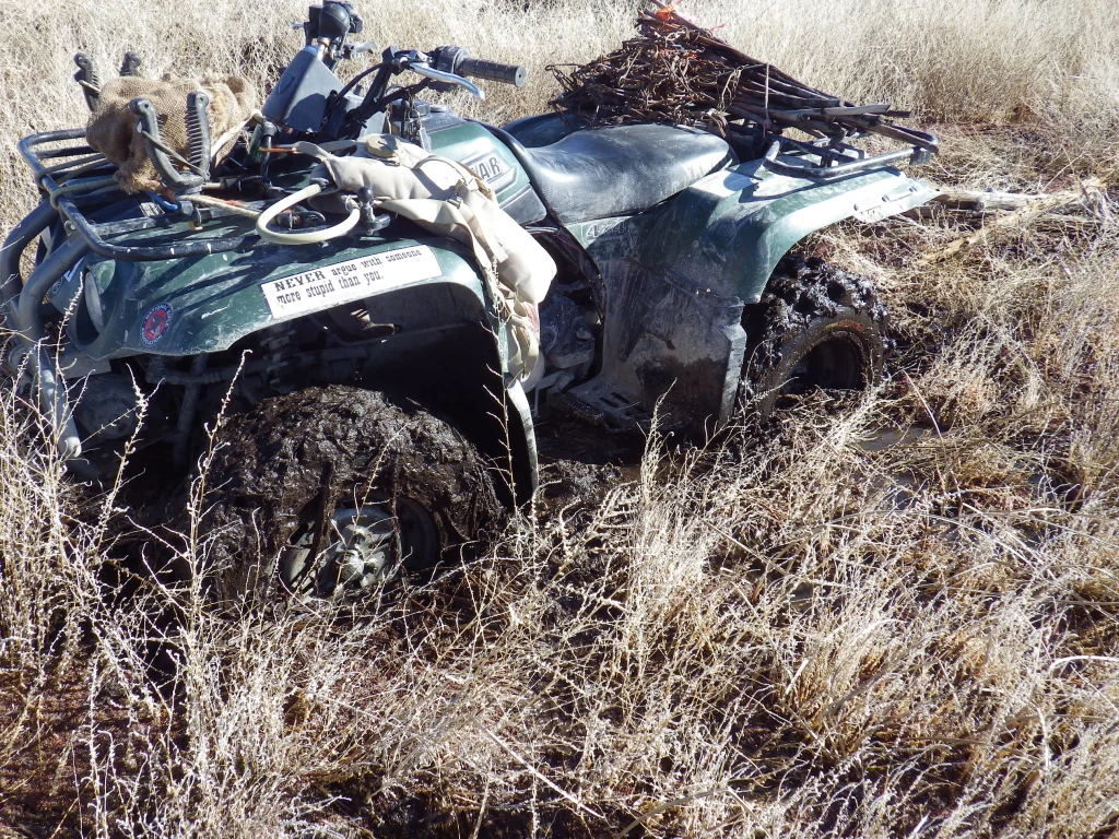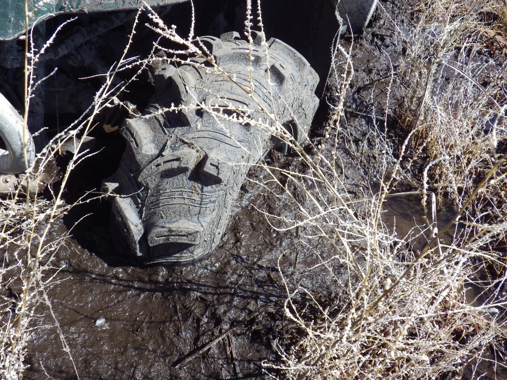I then continued toward home and called Wapiti…He too dropped everything he had planned the rest of the day in order to put on his hip boots and come play in the mud with me and Weasel. What better to do on a lovely Spring day? Drink beer and have a picnic? Heck no! Let’s go get muddy and mucky and break stuff because of a dummie like Butt who likes to get his rig buried in mud up to the bottom of the seat! Sure, I’ll be glad to help your out!