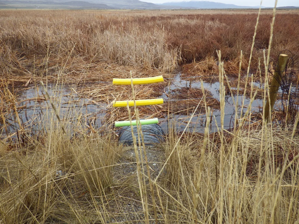 The last trip through the Big Springs gate for the 2014 season. It has been an interesting event trapping so far out on the East line. I have learned a thing or two about trapping out there and if there was more time I’m sure I would learn even more about it. The length of the line extends farther than I can see and I just know the majority of the rats are ‘out there’! Out there where the edge of the ice covers the main flow of water, where the Marti Gras is!