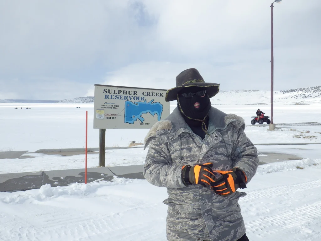 As is always the case in Wyoming, the wind did not stop blowing all day, but the temperature did rise from near zero to a balmy 20 something before the tourney was over. I had to place an ice spike into the ice to make sure my tent didn’t go tumbling down wind, but other than that it was a great day on the ice.