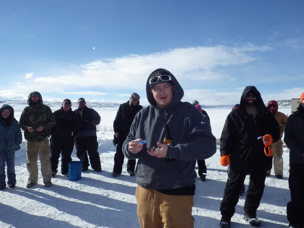 The ice was over 20 inches thick and so if any of you have threatened to come to this event and chickened out because you thought you might fall through the ice…NOT TO WORRY! 20 inches of ice will hold “your truck” (not mine, but yours) full of gear and beer…trust me…your truck will not fall through.