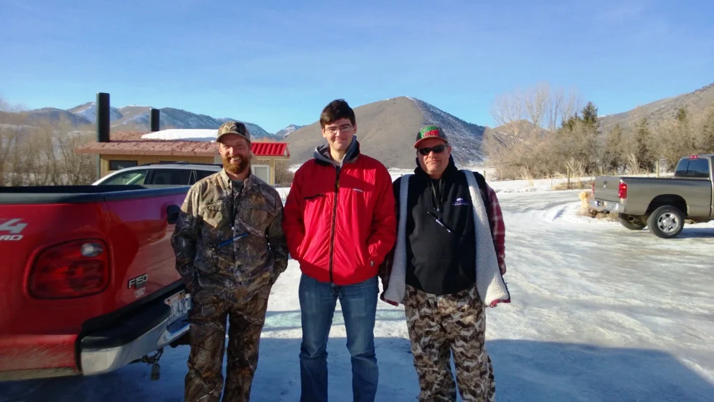 About noon or so, up pulls this red truck into my driveway. Actually up backed this red truck into my driveway and out of it came Weasel, Austin and Brian…they were on their way ice fishing and needed to borrow some of my stuff. I had been invited, but decided to stay home because of “stuff”….you know…”stuff”.