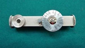 So, how does it work? Well, on one side it has an eye piece that you look through at your target. On this same side it has a dial, which you turn slowly. As you are looking through the eye piece and turning the dial, a second vision of your target slowly climbs up into your view and when the two visions come together, you read the dial and it tells you how far away it is. Cool huh? It ain’t a lazer deal, nor as fast, but for an antique it gets the job done quick enough.