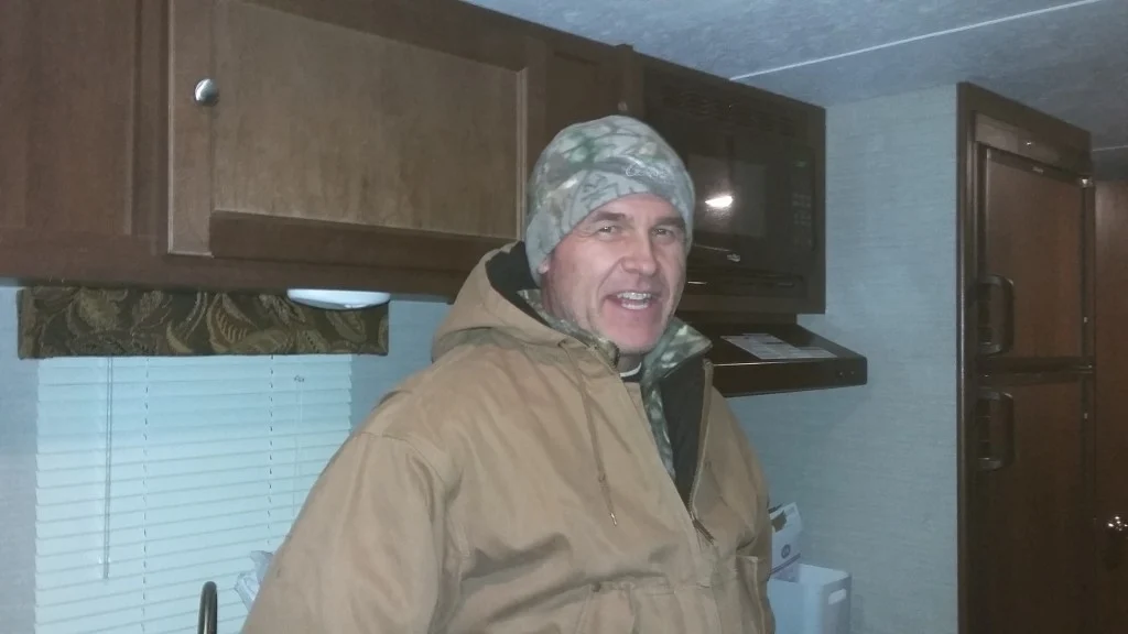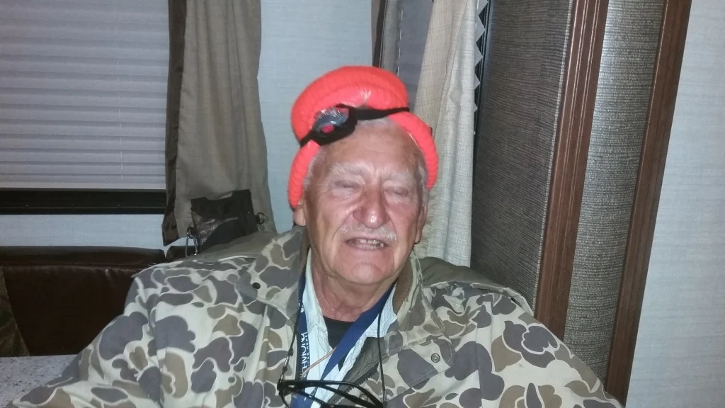 So, after a very quiet evening and a great nights sleep, I was up drinking a cup of coffee and decided to take MaPa’s out for his morning ritual and relief exercise. He is a small dog, but can really put you to the test of holding him back while he is on his leash. When he gets on the trail of a “critter” it is all you can do to hold him back, this walk was not exception. We went down stream from our camp and when we were about 400 yards down, He had led us over to the stream edge and through another camp.