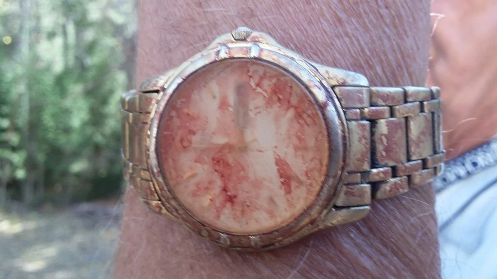 Well, neither Weasel nor I owned a hatchet and so we made the quick trip down to Smith and Edwards and picked up two Eastwing hatchets that are extremely sharp. We started chopping away at the wood beginning at the slanting line and continuing down toward the tip of the branches on either side of the handle marks. This being very foreign to each of us, we were cautious in our chopping and very critical of the job we were doing. At one point we stopped and decided we needed Lynn’s advise again. We jumped in Weasels truck and went to Lynn’s house for that advise. We thought we had chopped to the heartwood, but Lynn took one look at the job we had done and said we still had 1/2 inch more chopping to get to the heartwood. Back home we chopped some more…to the point of sore arm muscles and blister on the hands. But soon we were certain we both had heartwood showing in the centers of our limbs.