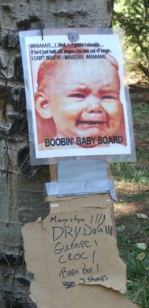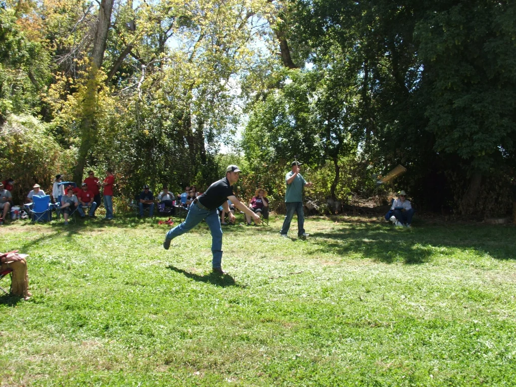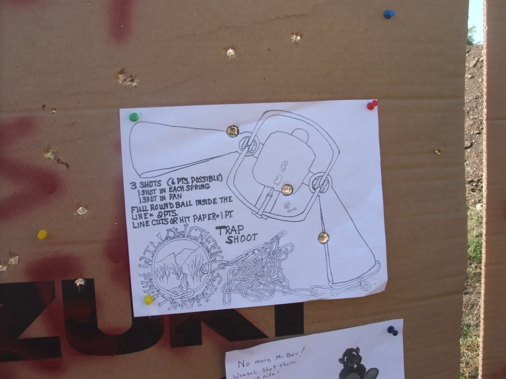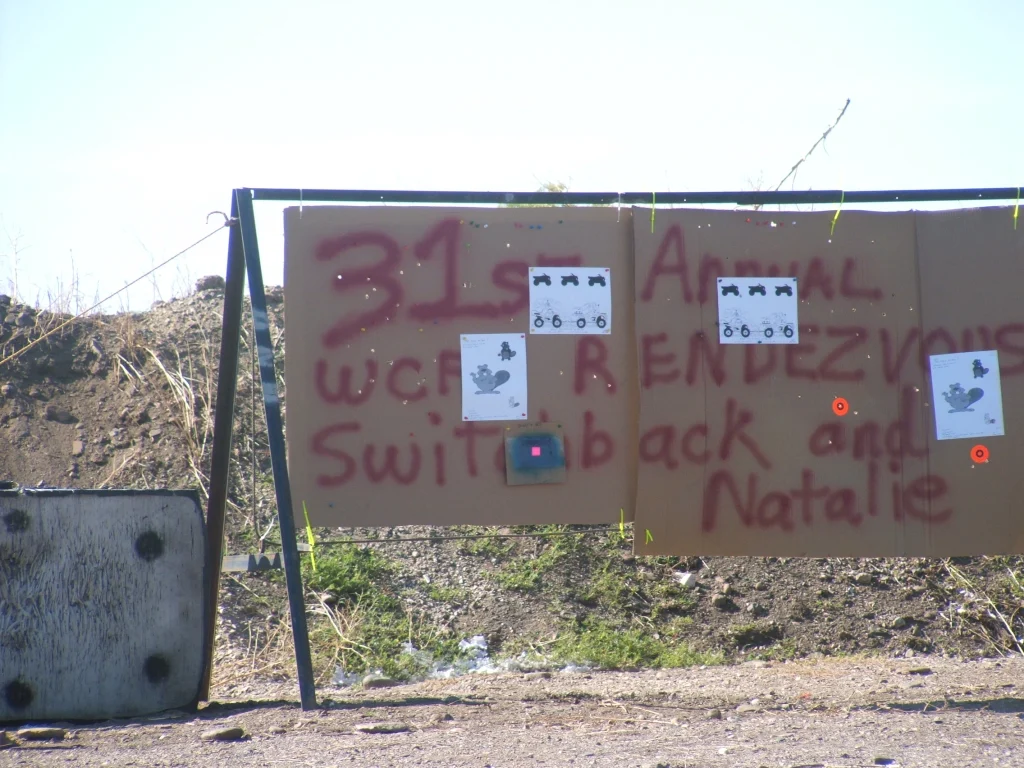 Of course you can’t have a bunch of different targets to shoot at with out having some “stinking rules”, here Switchback is reading up on what is do be done with each target.  Some are only one shot targets, while others may have as many as 5 to be shot.  Scoring of each target varies as well, some full ball rules, some half ball rules and others a line break will score big points.  Remember the one with the highest score gets first pick of a prize off the donated prize blanket!  The one with the lowest score gets whatever is left on the blanket!  Everyone wins!