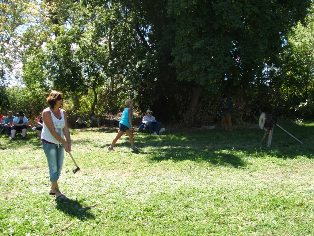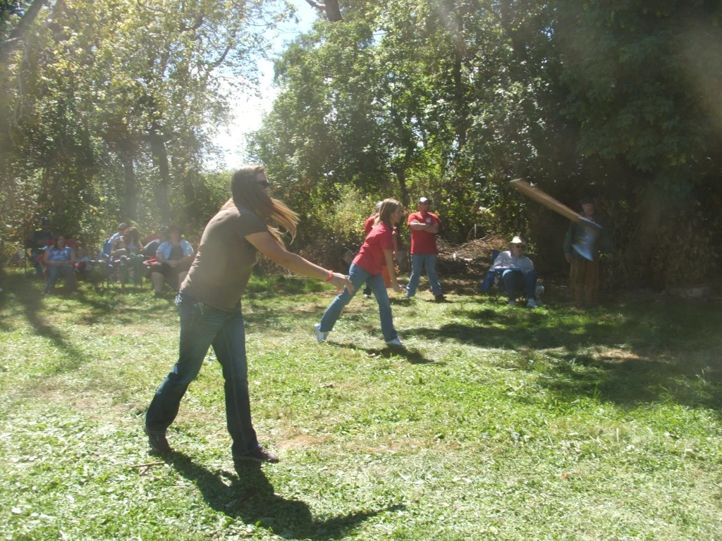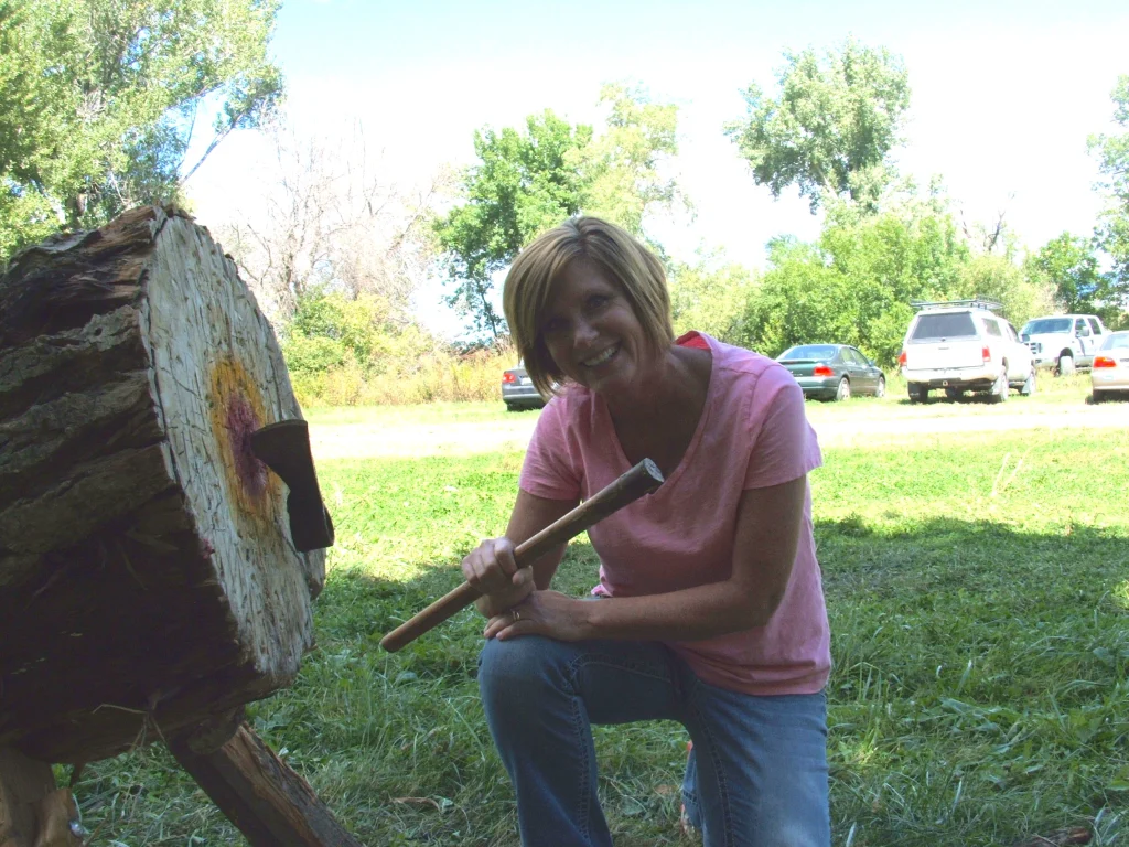 Now on to the men and womens hawk throw (remember, real mountain men throw knives….they don’t always stick the knife, but they throw it very well).
