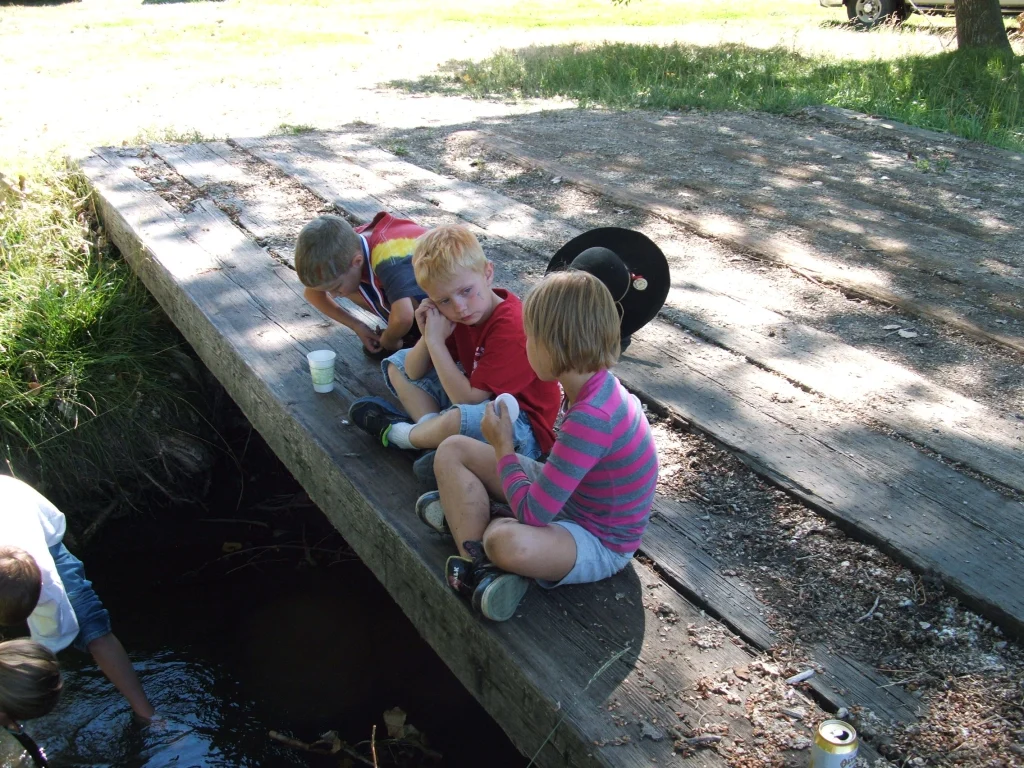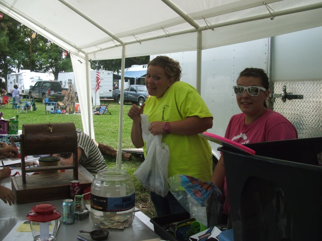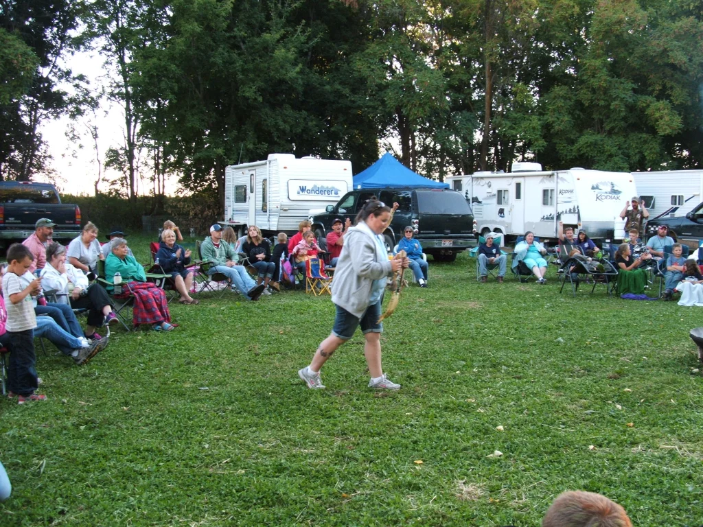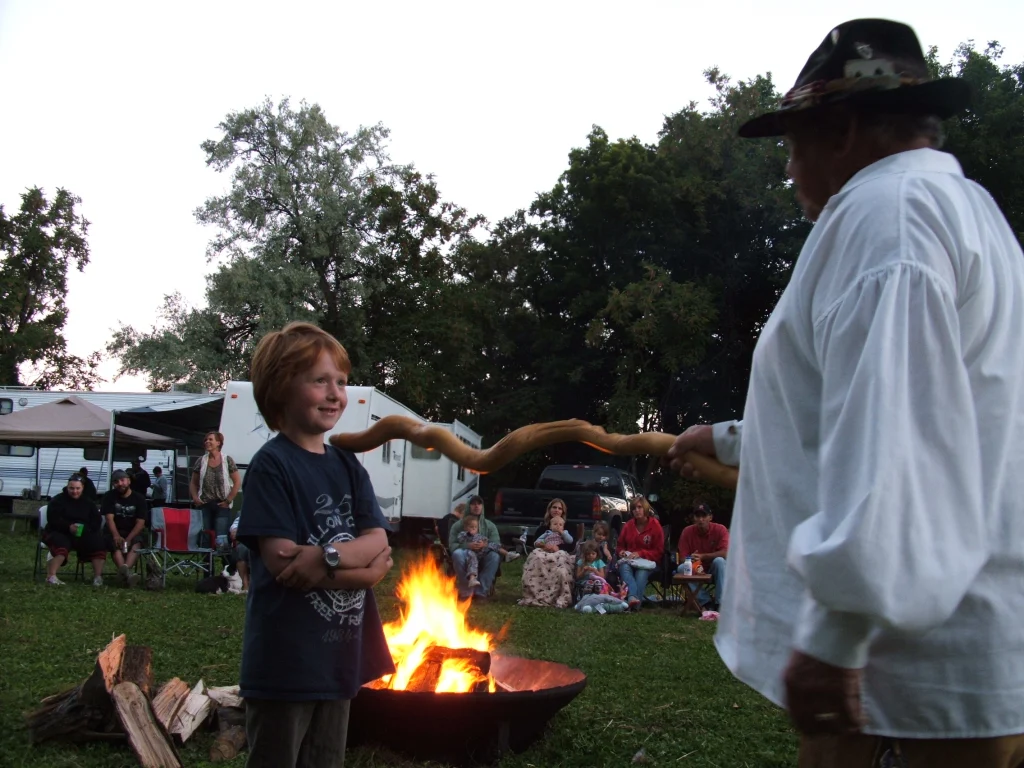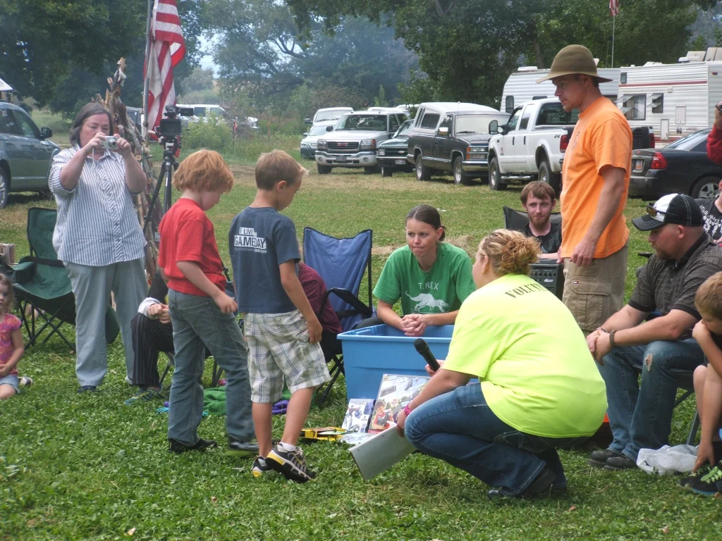 Well, we did have an organized event for the kids all lined up…the “Young Peoples Lympics”!  These kids were broken up into teams of 4 to 5 and each team had to toss a frying pan for accuracy, start a fire and burn a string, drink up some root beer and a few other things.  The team with the fasted time to do all these things won a great prize for each team member.  Yours truly, Bears Butt, was set up to be the bar tender and dish out the root beer.