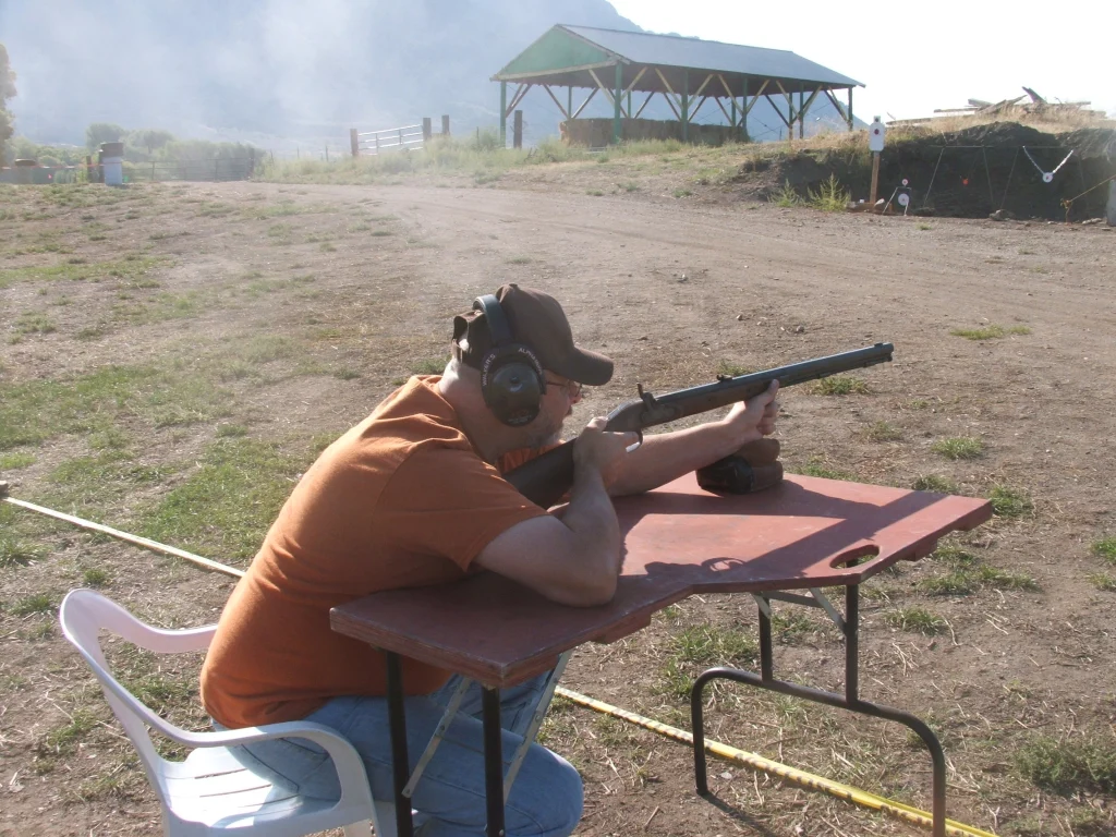 Seeing Edjukateer sitting at a shooting table does not mean we allow a rest to be used during the competition.  All competition shots must be done standing off hand.  Here he is making sure his rifle can “digest” the 20 grain limit of powder we have imposed upon ourselves for safety.  We are blessed to have a police force that allows us to shoot withing the city limits and don’t want anyone hurt in the event of a “flier” shot that doesn’t hit the backdrop to our range.