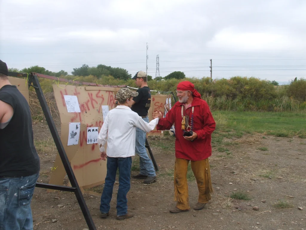 It’s hard to believe that we have been gathering now for 31 years and we must be having a good time or we would never had made it this long.  Switchback and Natalie did a stupendous job at pulling off this rendezvous!  We thank you dearly for everything you did.  Of course it doesn’t all fall on a couple of people, Bones did an excellent job with the range masters, targets, packets etc.  And of course the range masters who volunteered were excellent at keeping things safe and orderly.  Anchor with the hawk throws did an outstanding job as usual and the entire Gyllenskog family needs praising for the kids lympics, bb gun shooting and the adult lympics.  Fat Duck pulled off an almost impossible shotgun shoot, with some crazy “in the shooters face” bird throwing.  And last but not least were the volunteers who kept the kids occupied with face painting, games, an obstacle course and making sure they were tired by days end.